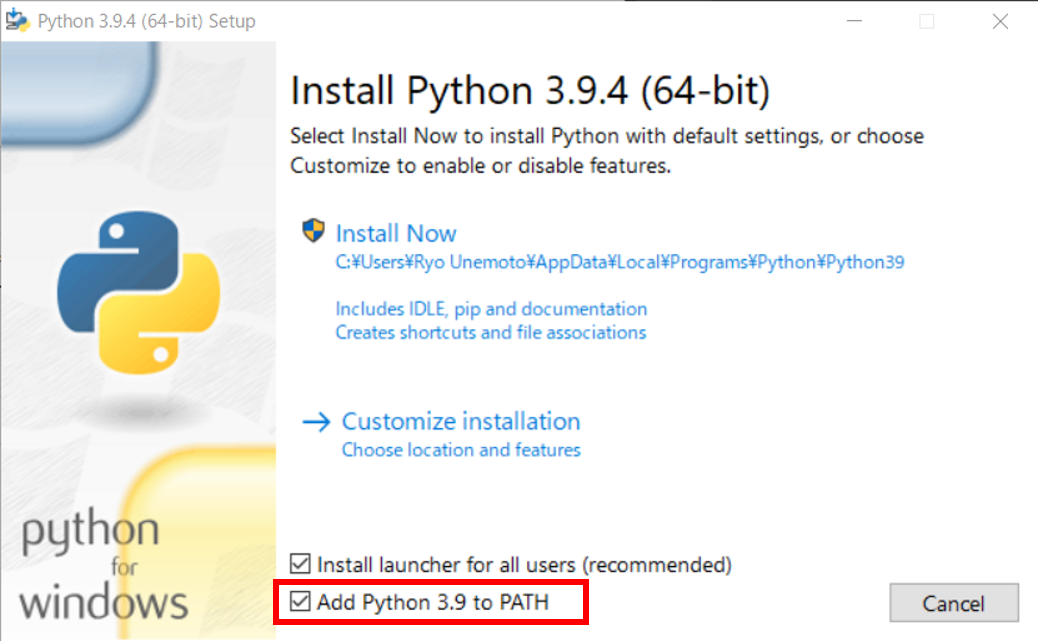 Download & Install Python 3.9.x or 3.10.x 64 bit from the official website. During the install option, please make your python installation is referenced in your PATH (see picture below!)